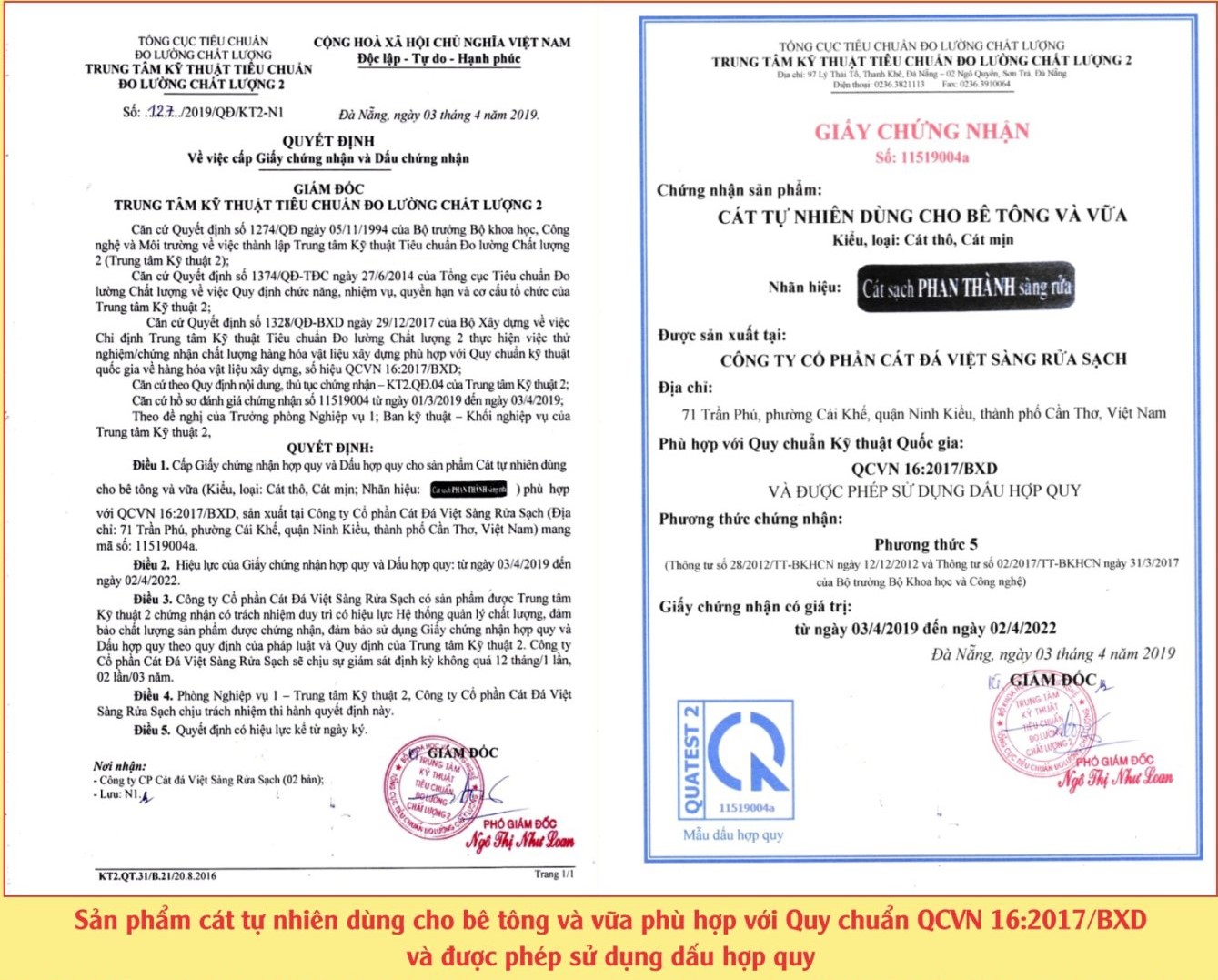 Công nghệ sàng rửa cát sạch Phan Thành đã được công nhận và trao tặng nhiều chứng nhận, bằng khen uy tín. Các tổ chức và cơ quan quản lý đã đánh giá cao những lợi ích mà công nghệ này mang lại cho ngành xây dựng và môi trường.